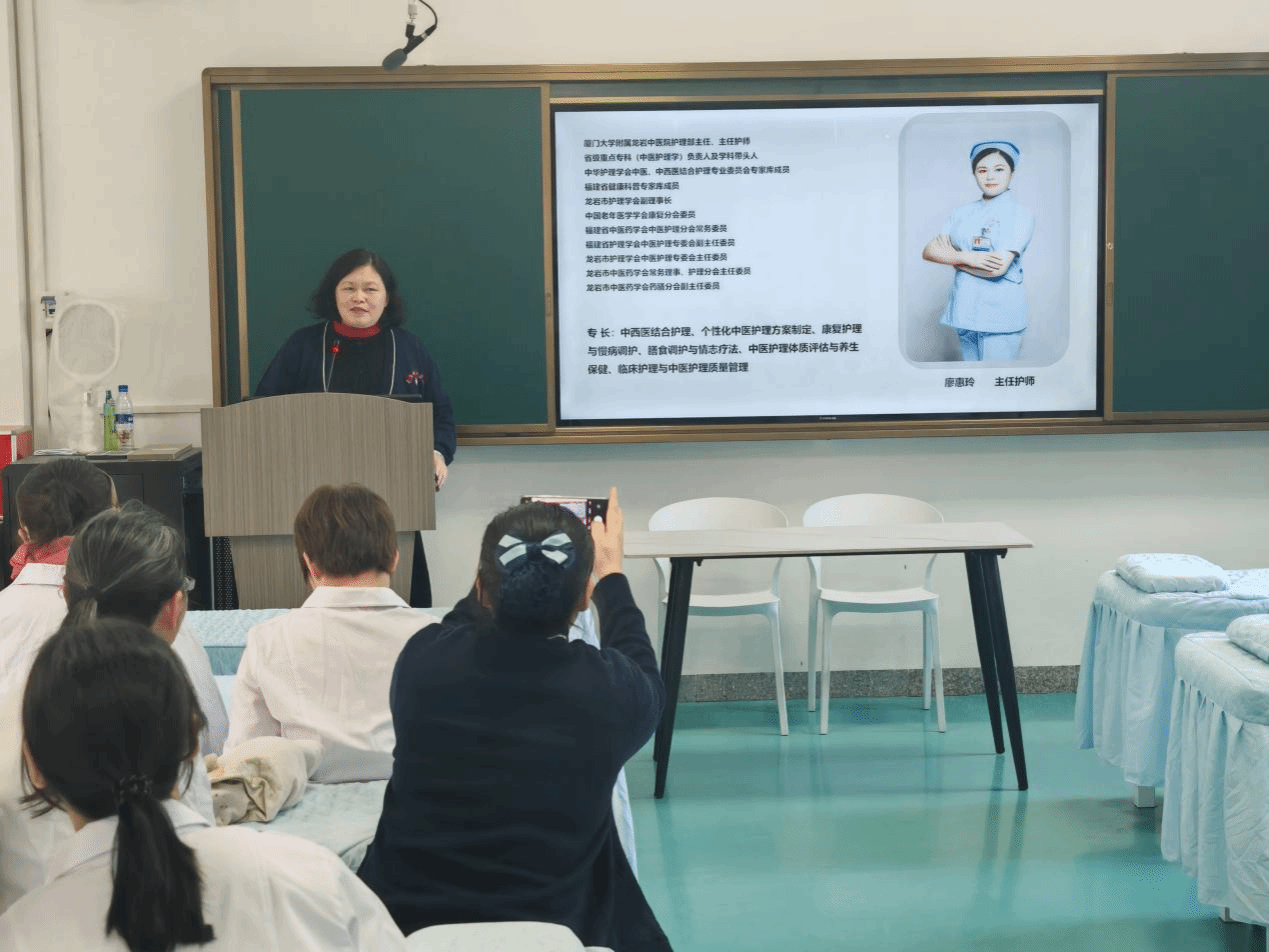 活动现场,龙岩市中医院廖惠玲主任深入剖析了闽西地域中医护理技术应用与发展,展现了中医适宜技术在疾病防治中的独特优势,为地域中医发展提供了新思路。陈丽兰副主任则聚焦常见中医护理技术操作,详细讲解艾灸、拔罐、刮痧等技术的原理、适应症及操作细节,理论与实践相结合,让复杂的中医知识变得通俗易懂。