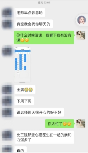 她注重心理育人,在学生心理方面进行科学、正面引导,帮助学生健康快乐地成长。经常有学生跟她诉说自己学习或生活中的烦恼、苦闷。面对来访学生,她认真倾听他们的心声,以专业的知识、乐观的心态与其沟通交流,帮助那些心理存在一定困惑和障碍的学生树立了正确的世界观、人生观和价值观。她常常晚上十一点多还在耐心与学生交流。