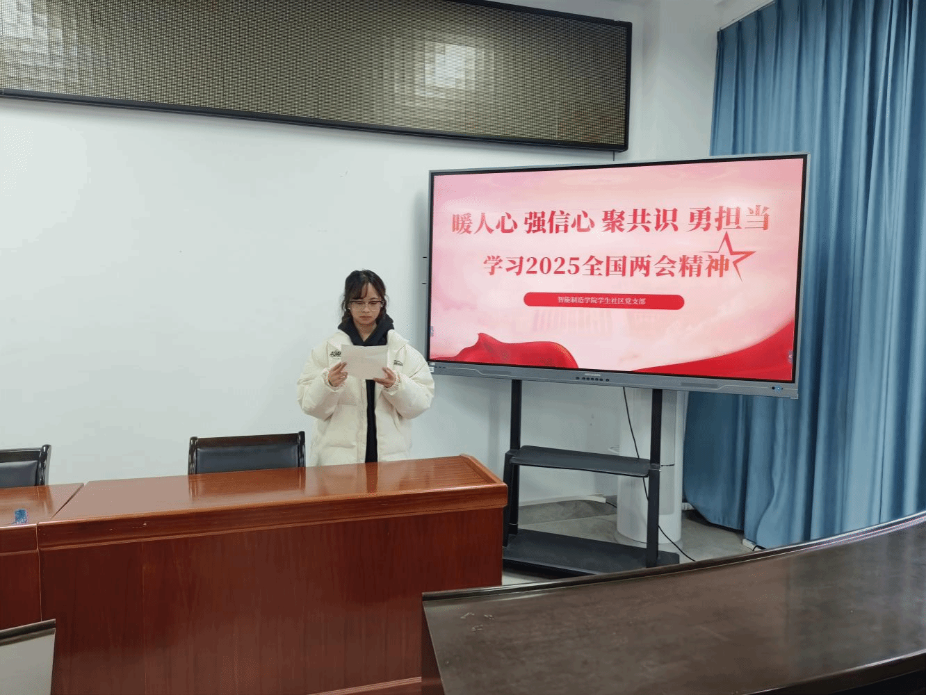 为深入学习贯彻2025年全国两会精神,增强党员与入党积极分子的责任感和使命感,智能制造学院学生社区党支部于3月31日在辛耕楼212会议室开展专题学习活动,学院全体学生党员和入党积极分子参加。