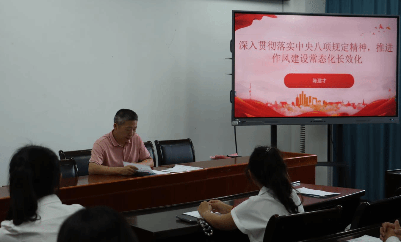 最后,陈建才要求,全院上下要深入学习贯彻习近平总书记关于加强党的作风建设的重要论述,全面落实中央八项规定及其实施细则精神。他希望,全体教职员工以扎实的作风建设成效,为推进学院高质量发展、创建职业本科院校、"双高"校建设和打造"予生最好学校"等重点工作提供坚强保障。