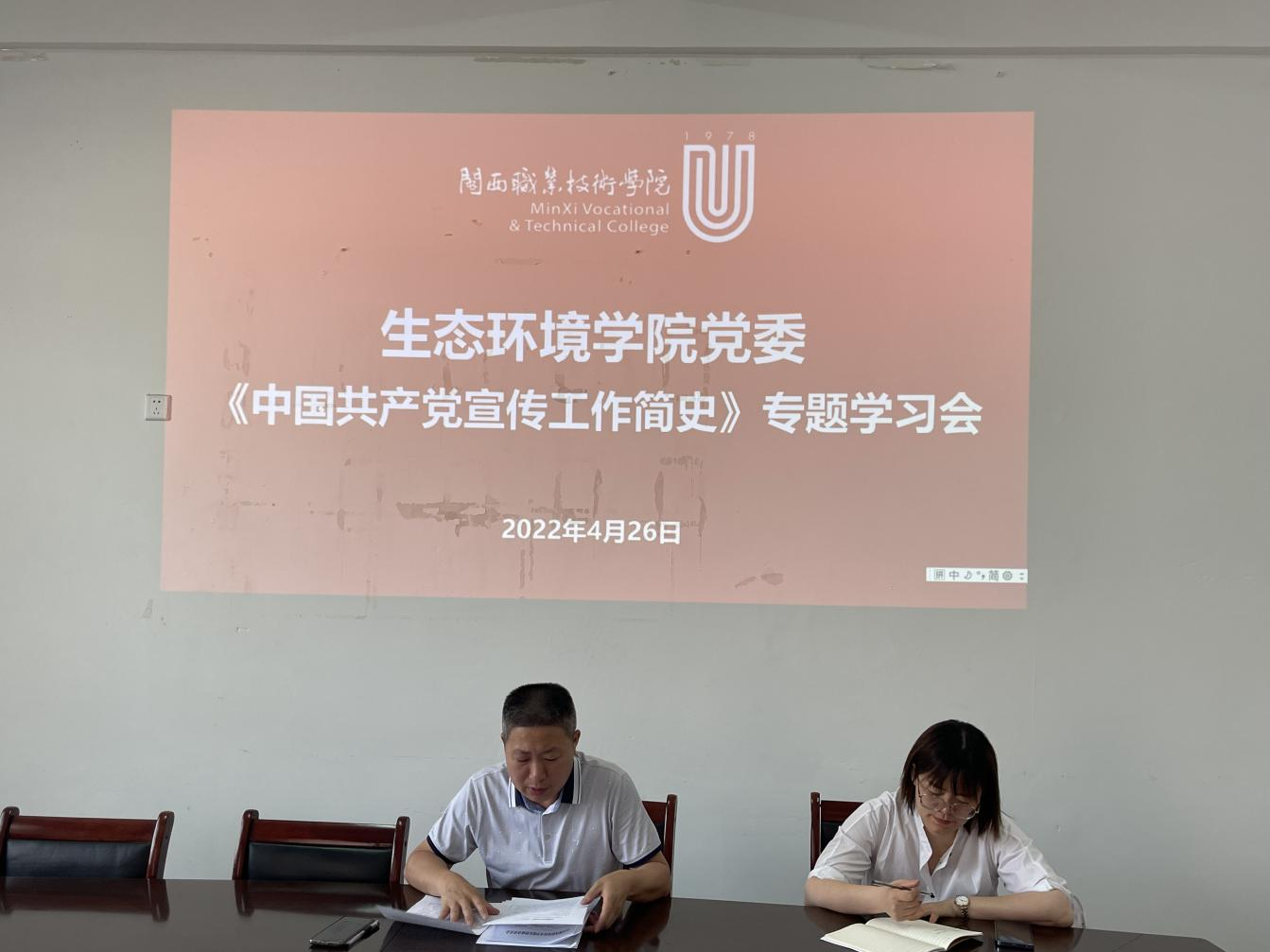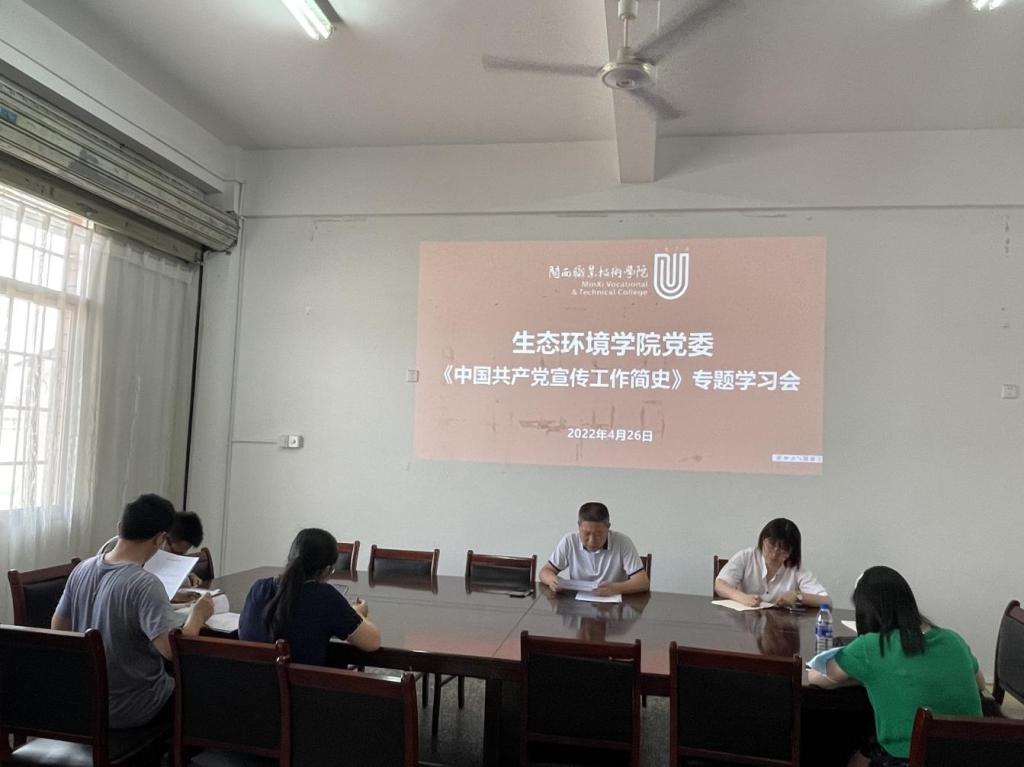 4月26日,生态环境学院党委召开《中国共产党宣传工作简史》专题学习会。学院党委委员、支部书记参加本次会议。