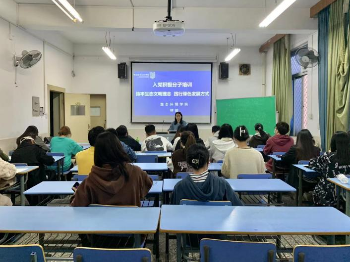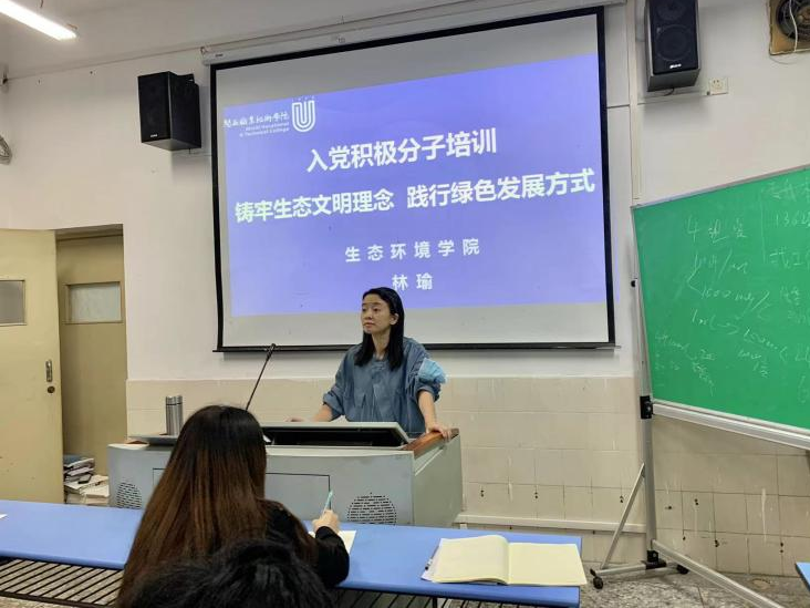 为深入贯彻落实习近平生态文明思想,培养学生生态文明理念,普及生态文明知识,推动形成绿色发展方式和生活方式, 2022年4月20日,生态环境学院于科技楼411开展了“铸牢生态文明理念,践行绿色发展方式”专题党课,本次党课由我院第一党支部书记林瑜老师主讲,20、21级入党积极分子参加了学习。
