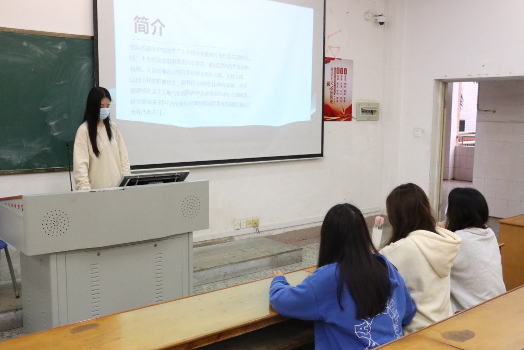 各团支部精心准备,通过视频、图片、PPT等载体,紧扣党的二十大报告原文,详细生动地为同学们介绍了学习宣传贯彻党的二十大精神的重大意义以及党的二十大精神的丰富内涵,在新征程上书写新的“青春之歌”等内容。活动中,同学们积极参与、热烈讨论,体现了新时代青年学生的良好风貌。