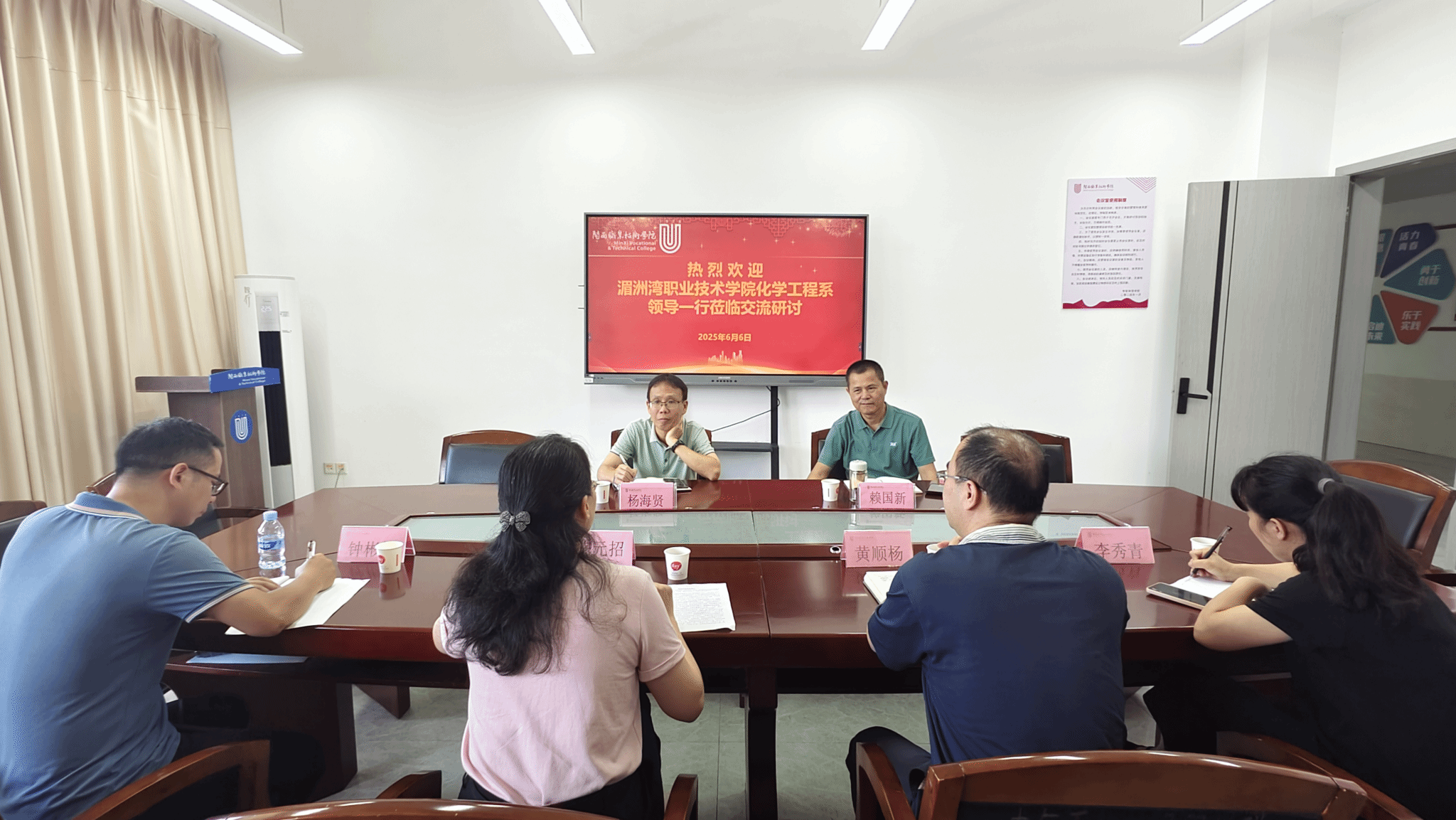 6月6日,湄洲湾职业技术学院化学工程系主任赖国新、副主任杨海贤莅临智能制造学院,就化工材料类专业群建设、校企合作、社会服务、“十五五”规划编制等方面进行交流研讨,黄顺杨副院长陪同调研。