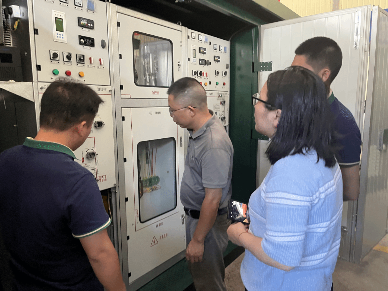 走访中,学院教师团队与光宇电力技术负责人详细沟通了项目当前进展、存在的技术难点及下一阶段重点任务。学院团队主要负责智能状态监测系统的研发工作,目前已在系统设计、数据采集与硬件安装等环节取得阶段性成果。双方还进一步明确了设备调试、企业试运行及年底项目验收等关键节点的高效协作机制。