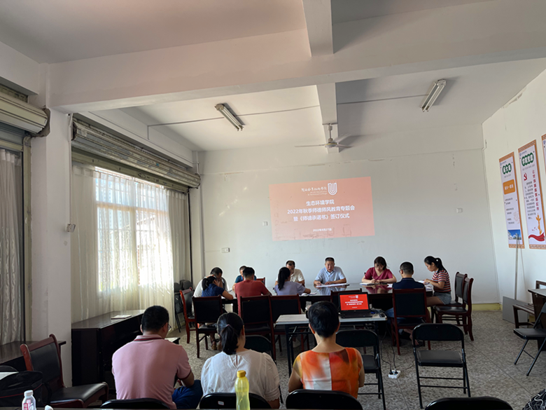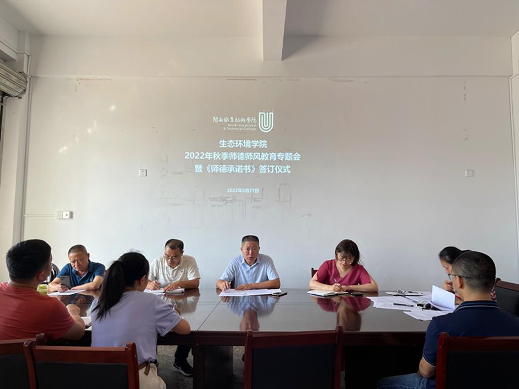 为加强学院教师队伍师德师风和纪律作风建设,增强广大教职工立德树人奋进当担的时代精神,全力打造一支业务精湛、师德高尚的教师队伍,8月27日,生态环境学院组织全院教职工,开展2022年秋季新学期师德师风教育专题会议。