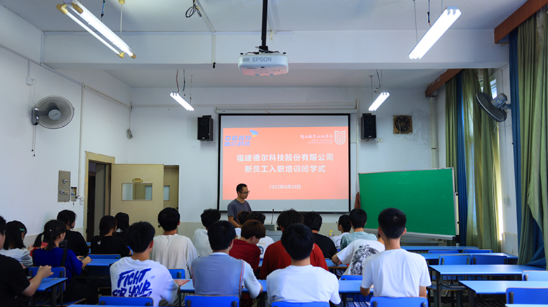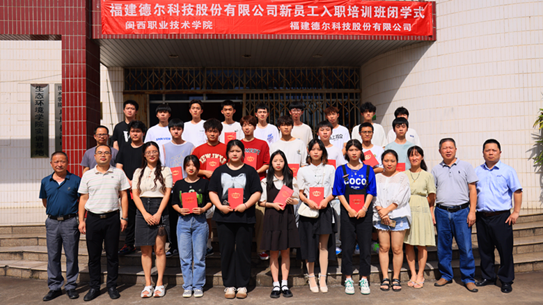 6月24日下午,我院在科技馆四楼教室召开了福建德尔科技股份有限公司新员工入职培训班闭学典礼,福建德尔科技股份有限公司代表胡永开经理一行四人,我院书记陈建才,副院长黄顺杨,专业主任钟彬扬以及生态环境学院相关专业教师参加了闭学式。