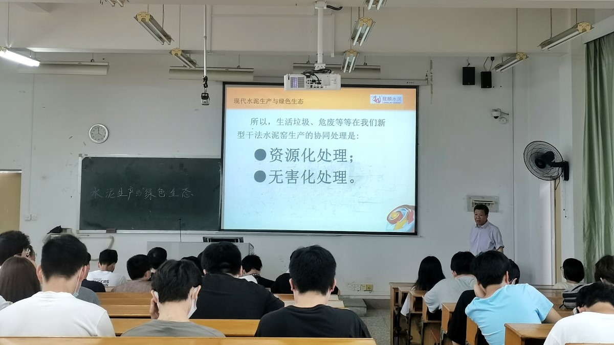 为坚持走好“生态优先,绿色发展”之路,加强绿色低碳技术创新应用,加快工业企业绿色化改造提升,进一步向同学们普及绿色建筑材料的知识,5月27日,MG冰球突破官网特聘教授、龙麟集团的副总经理黄永生为生态环境学院师生作“现代水泥生产与绿色生态”专题讲座,我院师生踊跃参加,讲座由学院行政负责人黄顺杨主持。