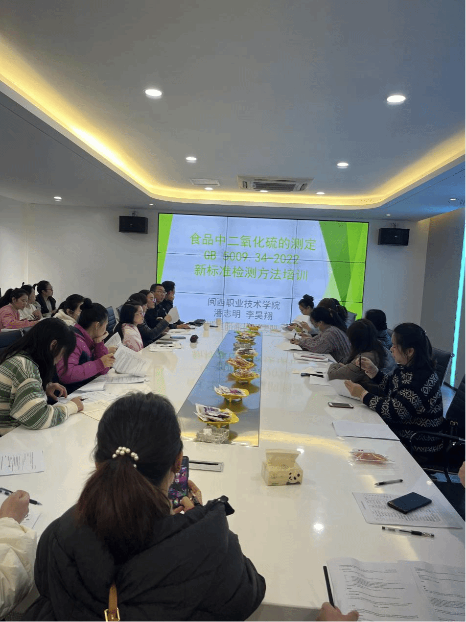 3月29日我院潘志明副教授和李昊翔老师受邀前往连城地瓜干协会举办的食品中二氧化硫检测新标准的化验员培训班,对各个企业的近30位化验员进行了新标准方法的讲解及操作演示。二氧化硫指标是地瓜干出厂检验指标的关键指标,通过培训使各个企业的化验员具备了该项指标的检测能力。
