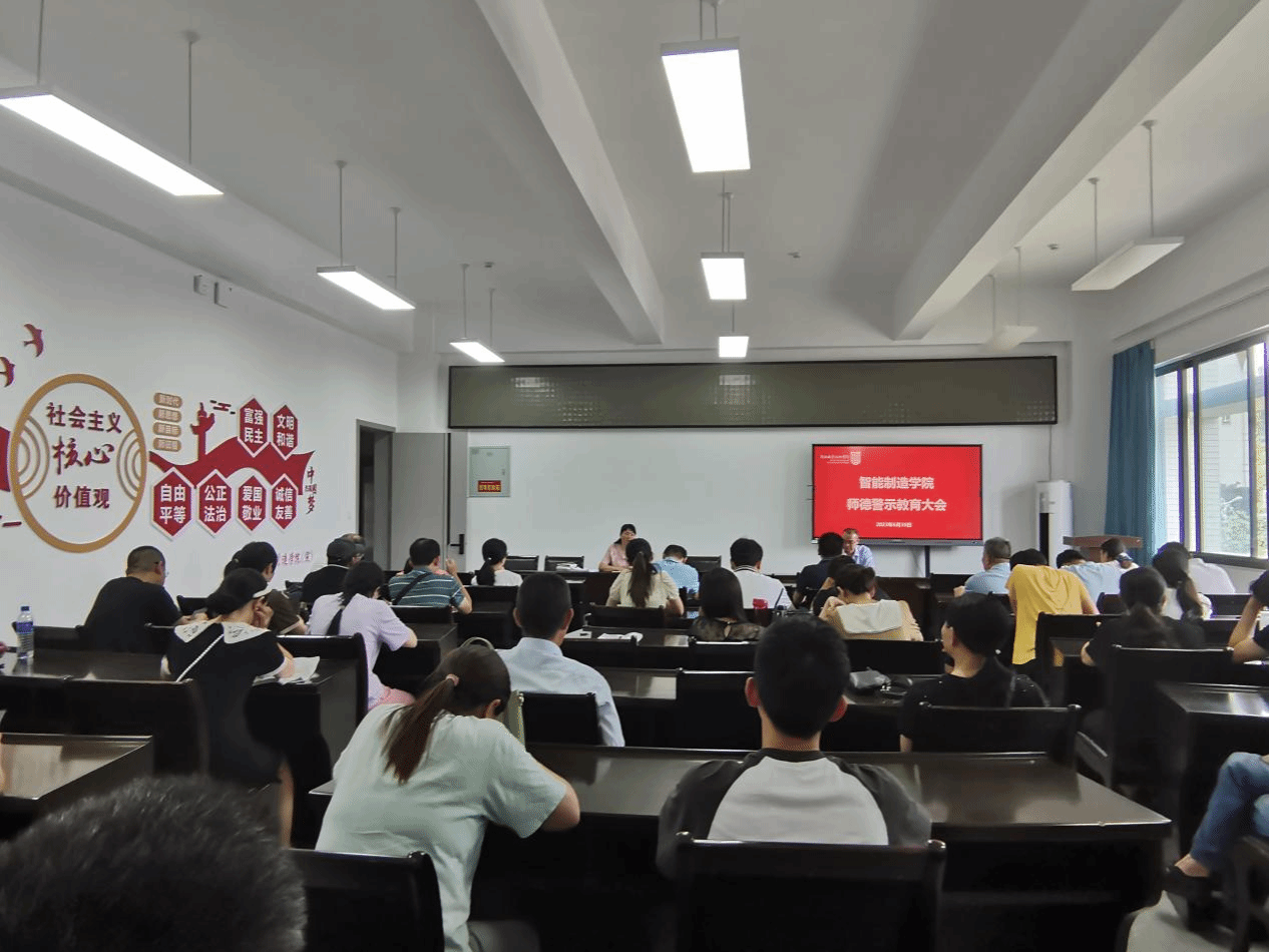 党的二十大报告明确指出,要加强师德师风建设,培养高素质教师队伍,弘扬尊师重教社会风尚。为深入贯彻党的二十大精神,加强教师思想政治和师德师风建设,智能制造学院于6月30日召开师德警示教育大会,全体教职员工参加。