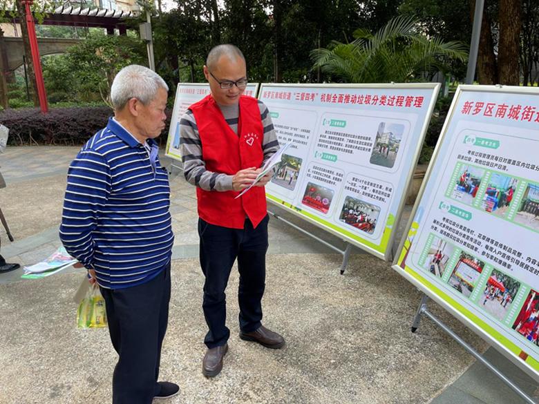 在活动中,生态环境学院第一支部党员率先来到南城街道社区参观学习,南城街道负责人向我们详细介绍了垃圾分类过程管理“三督四考”机制,同时,党员们现场参观了社区垃圾分类投放点并学习如何进行垃圾分类,分类后如何处理等垃圾分类知识。参观学习后,党员纷纷化身为志愿者向社区居民宣传垃圾分类知识,志愿者们向社区居民发放垃圾分类倡议书、垃圾分类投放指引,并以通俗易懂的语言向群众解说如何进行正确垃圾分类,引导群众提高垃圾分类意识、学会垃圾分类投放知识、自觉参与垃圾分类行动,促进周边群众从垃圾分类意识到分类习惯再到自觉行动的转化,让周边的群众从绿色生活中感受生活的便利、清洁和生活品质的提升。