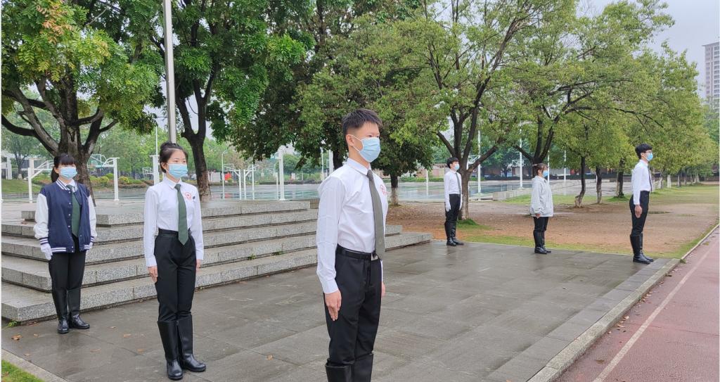 迎着朝阳,英姿飒爽的国旗班同学迈着铿锵有力的步伐护送国旗行进至升旗台。当嘹亮的国歌声响起,鲜艳的五星红旗迎着朝阳冉冉升起时,现场师生高唱国歌,心潮澎湃,面向国旗行注目礼,表达对伟大祖国的热爱,对“五四精神”的崇高敬意。升旗仪式结束后,学生代表苏景威同学在国旗下发表了《弘扬五四爱国主义》的讲话,倡议青年将青春理想与服务人民、奉献祖国相结合;与精进学业、知行合一相结合;与不懈奋斗、积极进取相结合。牢记习近平总书记嘱托,立足时代新征程,坚定不移听党话、跟党走,不负党和人民的殷切期望,努力成长为堪当民族复兴重任的时代新人。