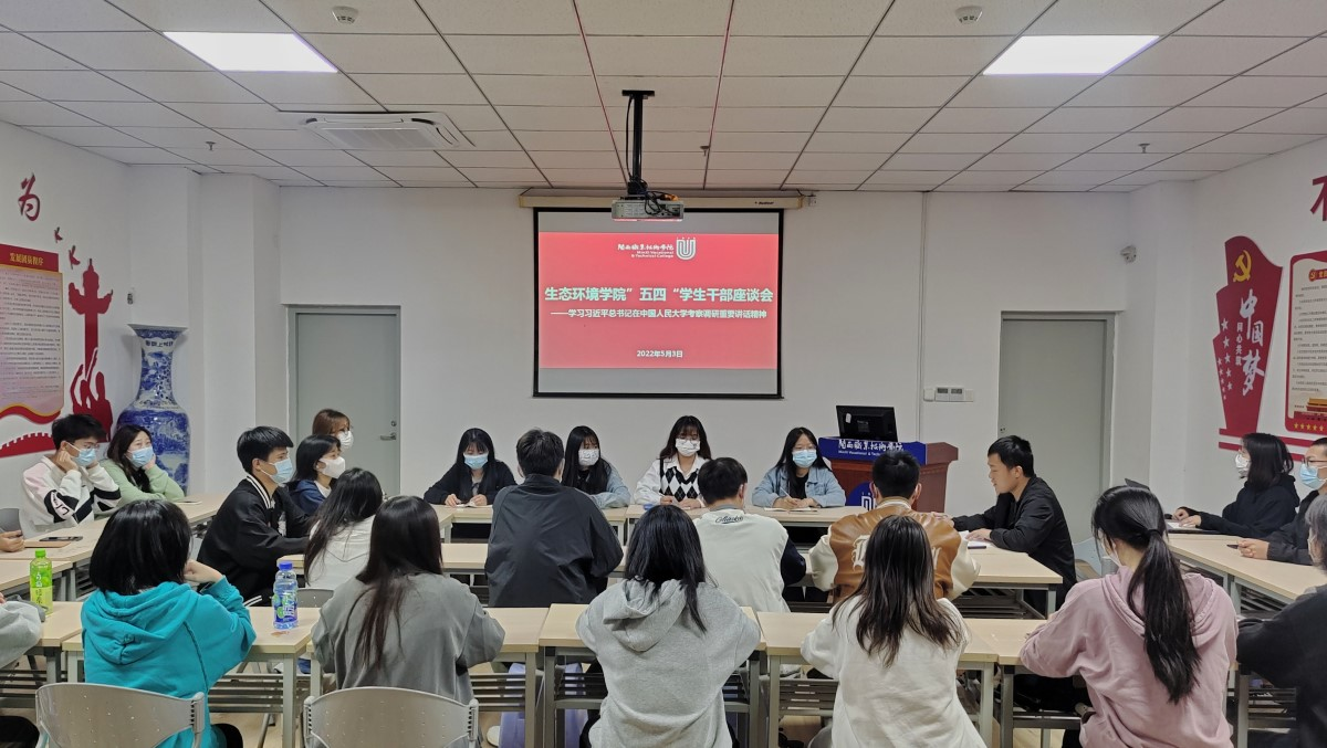 为深入学习习近平总书记考察中国人民大学重要讲话精神,弘扬五四精神,真正让讲话精神深入人心,指导实践,2022年5月3日,生态环境学院召开“五四”学生干部座谈会,集中学习习近平总书记在中国人民大学考察调研时的重要讲话精神。会议由我院团委书记廖启华老师主持,全体团委学生会负责人参会。