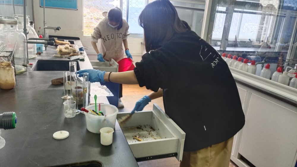 活动开始前,实验室负责老师系统讲解实验室注意事项与安全规定,并对实验室的相关器材进行简单介绍。活动过程中,同学们积极参与到清扫劳动中,分为清扫组、整理组开展劳动,打扫过程中分工明确、井然有序。经过近两小时的努力,最终圆满完成了清扫任务。清扫完毕后,同学们又细致地对实验室中仪器试剂的摆放及实验仪器的安全进行了一一检查,力求在提升学生劳动实践能力的同时加强实验室安全教育,不断提高学生实验室安全意识及应对突发安全事故的能力,营造实验室安全文化氛围。参与清扫活动的廖同学谈到:“劳动是令人感到愉悦的,同时也是一种提升自我。