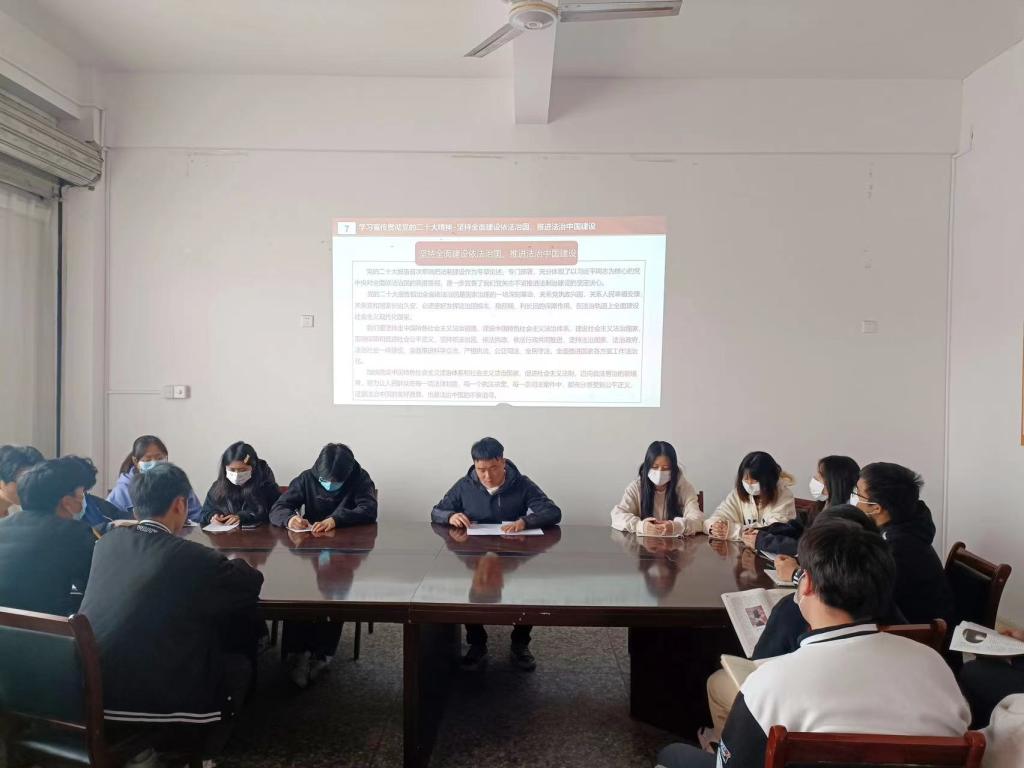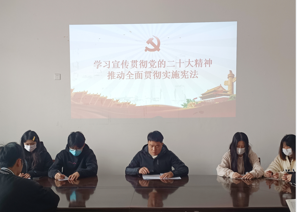 为深入学习贯彻党的二十大精神、习近平法治思想和习近平总书记关于宪法的重要论述,大力弘扬宪法精神,积极培育青年大学生的法治意识,增强我院学子对宪法的了解与认识。12月4日,智能制造学院紧紧围绕今年宪法宣传周活动主题,将活动作为学习宣传贯彻党的二十大精神的重要载体,开展“学习贯彻党的二十大精神 ,自觉维护宪法权威”主题宪法学习活动。学院团委负责老师领学,学生干部及团支部学生代表参加。