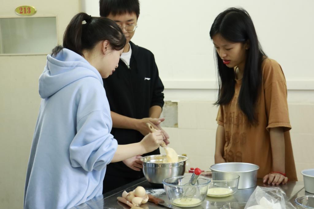 活动开始前,老师采购了鲜肉、鸡蛋、蔬菜等食材,同学们提前布置好了活动现场,“大厨们”齐聚“厨房”,动作娴熟,调制馅料,为学生包饺子活动做好了充分准备。随后,在老师的指导和有序组织下,同学们纷纷化身包饺子小能手,捏出了柳叶饺、三角饺、元宝饺等形态各异的饺子。活动另一现场,同学们在糕点老师的悉心指导下都制作出了精美的蛋糕。