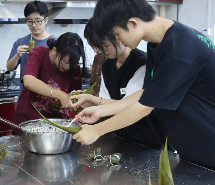 活动过程中,在老师的讲解和指导下,在同学们的配合下开始了井然有序的工作,烤箱里新鲜出炉的蛋糕胚散发诱人的香味。包粽子看似简单,实则不易步骤上十分讲究,在老师的指导下,同学们也包出许多有创意的小粽子