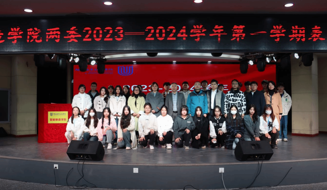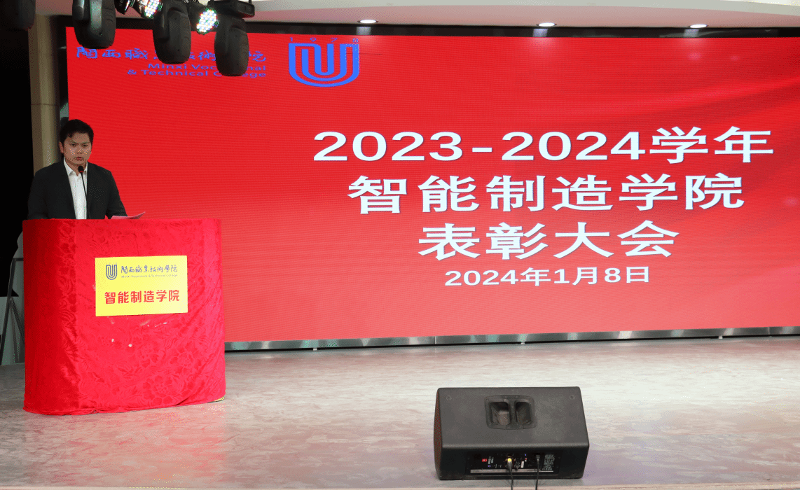 为进一步总结本学期团学工作,表彰先进,调动广大学生的积极性,使同学们学有榜样、有干劲、有方向,2024年1月8日,智能制造学院在数字化艺术中心召开2023-2024学年第一学期两委表彰大会,对在本学期重大活动、赛事中取得突出成绩的集体和个人进行表彰,发放荣誉证书和奖金等。智能制造学院党委陈建才书记、丘文婷副书记、黄顺杨副院长以及全体辅导员出席了表彰大会,大会由学院团委副书记谢春杰老师主持。