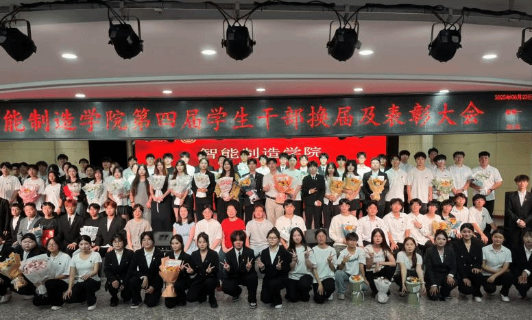为加强学生干部队伍建设,总结经验、表彰先进并选拔新人,智能制造学院于6月23日隆重举行两委第四届学生干部换届及表彰大会。