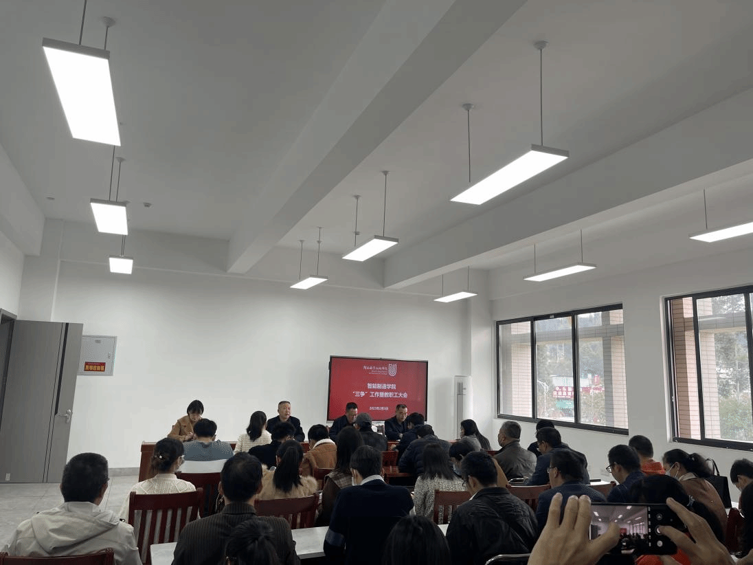 2月3日,智能学院在辛耕楼212会议室召开“三争”工作暨教职工大会,智能制造学院全体教职工参会,梁俊平校长莅临指导。