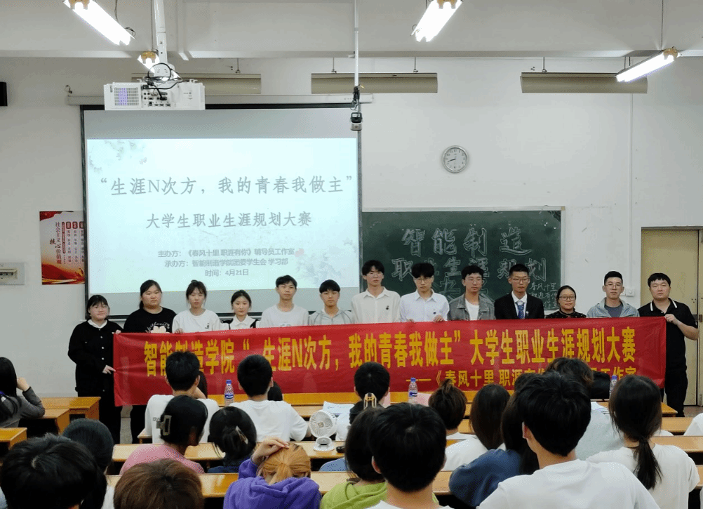 为加强大学生职业生涯教育和就业创业指导工作,引导大学生客观透彻进行自我认知和评估调整,提高就业技能,全力打造予生最好学校,4月27日晚,智能制造学院《春风十里 职涯有你》辅导员工作室举办“生涯N次方,我的青春我做主”职业生涯规划大赛决赛。学院全体辅导员出席本次比赛并担任大赛评委。
