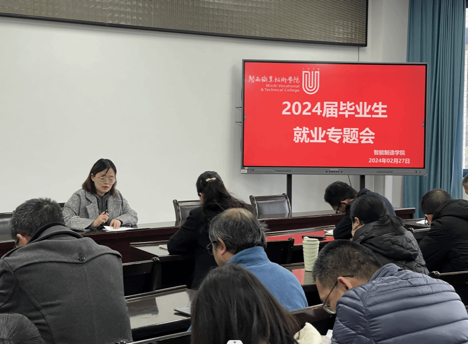 为进一步推进2024届毕业生就业工作落实落地,实现毕业生更充分和更高质量就业。2月27日新学期开学前夕,智能制造学院召开2024届毕业生就业工作专题会。学院党政领导班子全体成员,全体教职工参加会议。
