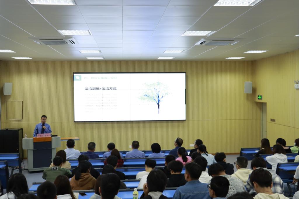 李高阳检察长从检察以生态环保领域公益诉讼案例为切入点,深入浅出、生动形象地阐述公益诉讼制度的现实意义、检察公益诉讼的类型、检察公益诉讼的领域、检察公益诉讼现状等四个方面内容,凸显检察诉讼在生态环境保护、食品药品安全、国有资产保护、国有土地使用权出让和英烈权益保护等领域的重要性,进一步提高师生法律意识、法治观念、法治思维。