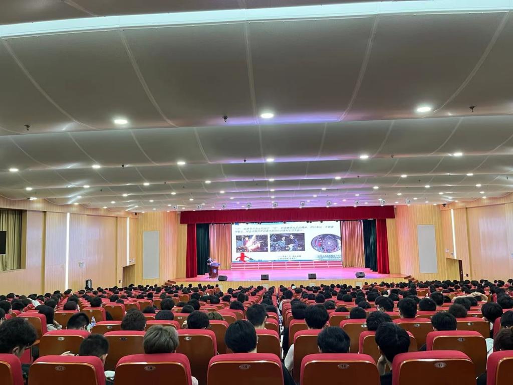 为深入贯彻落实习近平新时代中国特色社会主义思想,培育和践行社会主义核心价值观,大力弘扬劳模精神、劳动精神、工匠精神,帮助学生树立正确劳动价值观和良好劳动品质,推动学生德智体美劳全面发展,10月17日,智能制造学院于在大匠堂举办“能工巧匠进校园”专题讲座。学院领导班子出席讲座,全体22级新生、辅导员及班主任聆听讲座。讲座由学生工作负责人丘文婷主持。