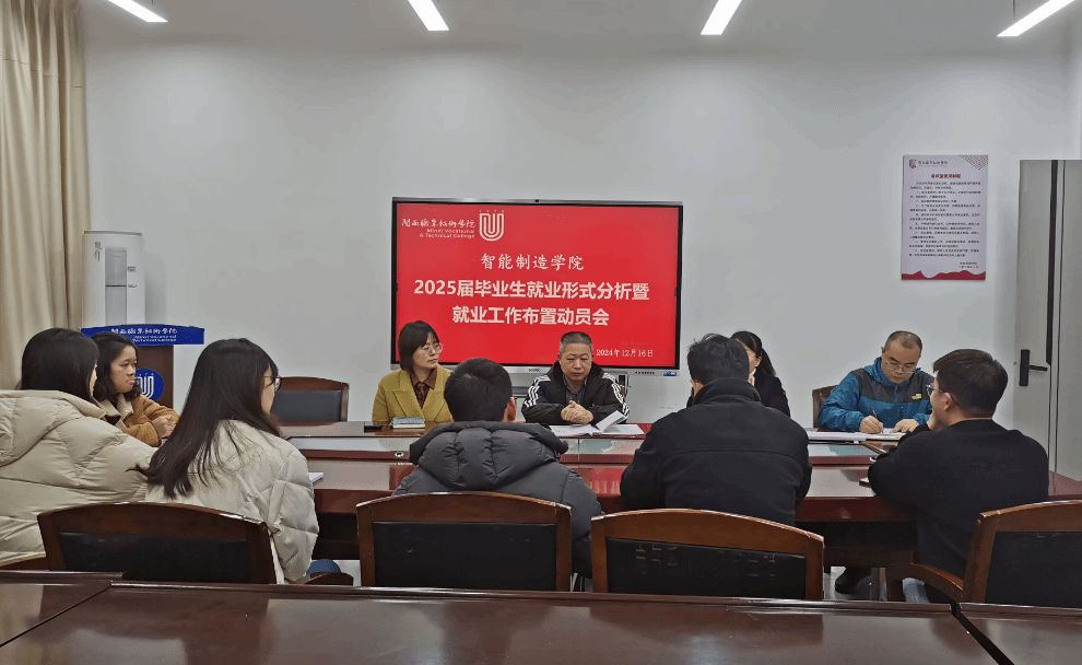 为深入贯彻落实党中央、国务院和省委、省政府对高校毕业生就业创业工作的决策部署。12月16日,智能制造学院在辛耕楼216会议室召开了2025届毕业生就业形势分析暨就业工作布置动员会。会议由学院负责人陈建才主持,学院领导班子、各专业主任和毕业班辅导员参加会议。