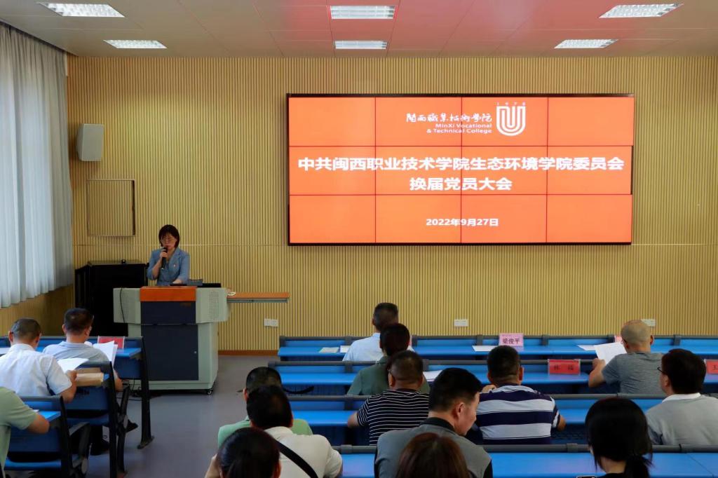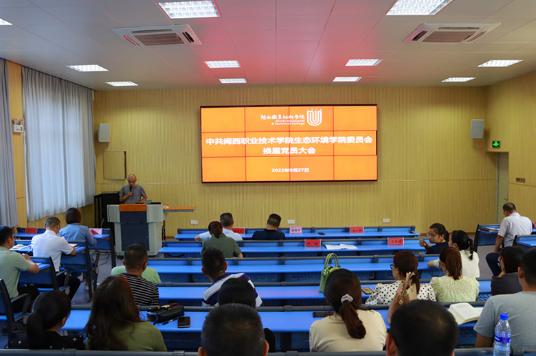按照学校党委统一部署,9月27日下午,生态环境学院党委换届选举党员大会在望云楼一楼报告厅隆重举行。学院45名师生党员参加大会,生态环境学院党委副书记丘文婷主持大会。