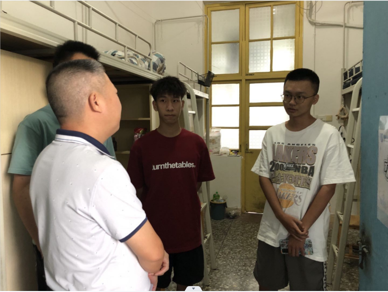 走访过程中,学院领导与同学们进行亲切的交流,仔细地询问大家对新环境的适应,认真倾听新生的想法,并就相关问题进行了深入交流,一一解答同学们提出的问题。同时嘱咐孩子们要注意宿舍用电安全,关心关爱宿舍成员,尽快适应变化,养成规律的生活和学习习惯,以饱满的热情投入到学习生活中去。新生辅导员在与新生的交谈中,新生辅导员进行了防诈骗相关内容的宣传教育,提醒同学们注意个人财产安全,谨防电信诈骗。接着嘱咐同学们疫情期间严格遵守学校安排,合理运用时间,遇到困难及时联系老师等。各班班导也与新生进行了热切的交谈,将自己的经验传授给新生,同时提醒他们应该合理安排时间,规划好自己的大学生活。