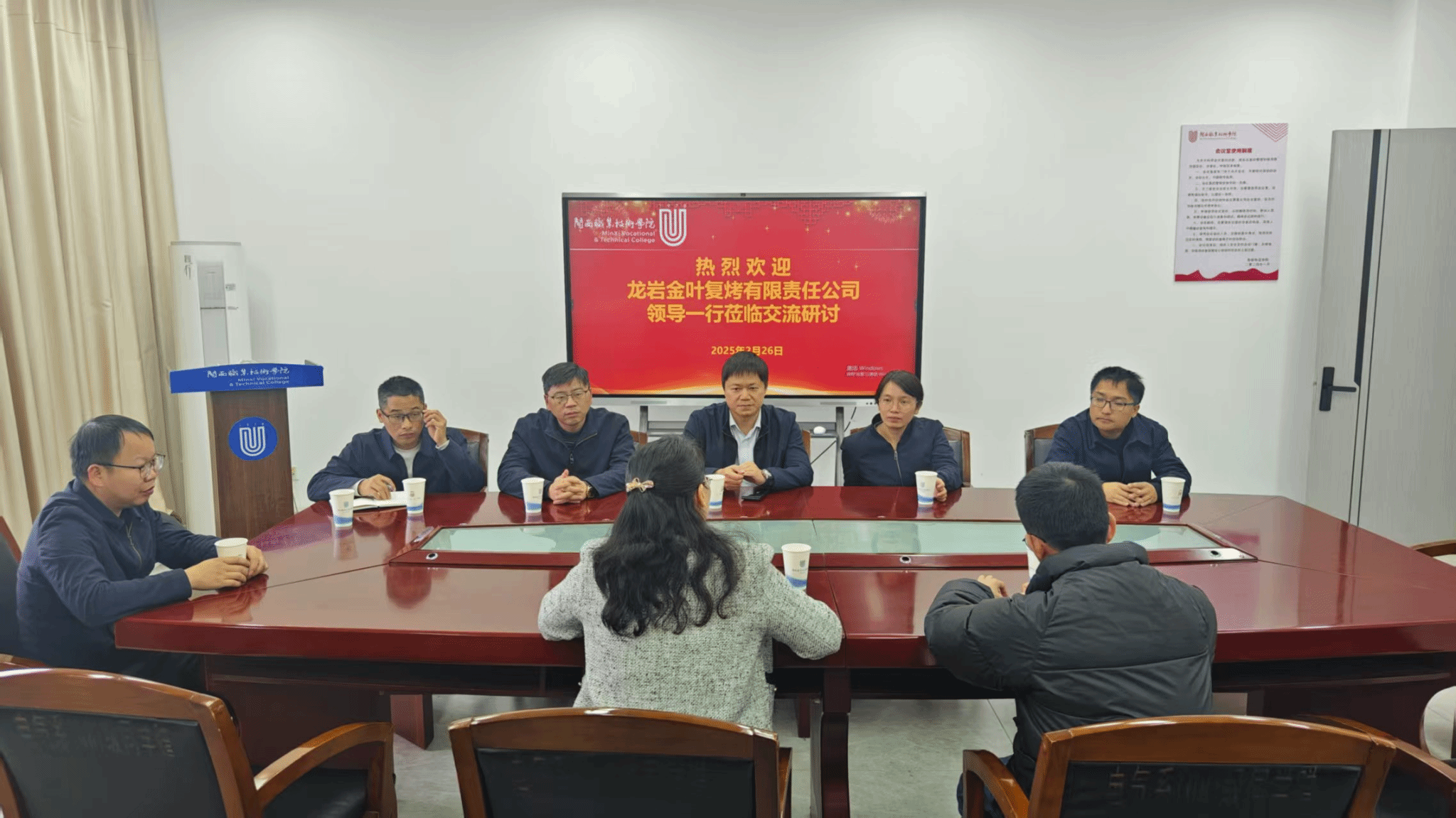 2025年2月26日,智能制造学院院长陈元招及学院骨干教师与龙岩金叶复烤有限责任公司开展校企合作交流活动,与公司人力资源部主任卢禹雯及相关部门负责人就企业定制化培训、电工技能提升计划等议题展开深入探讨,并达成多项共识。