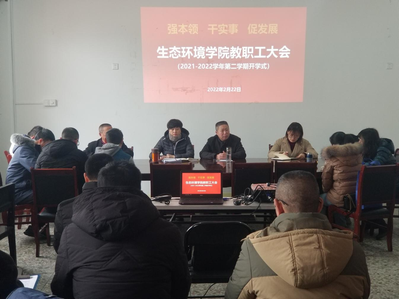 2月22日下午,生态环境学院在办公室一楼召开2021-2022学年第二学期开学式,全院教职工参加。