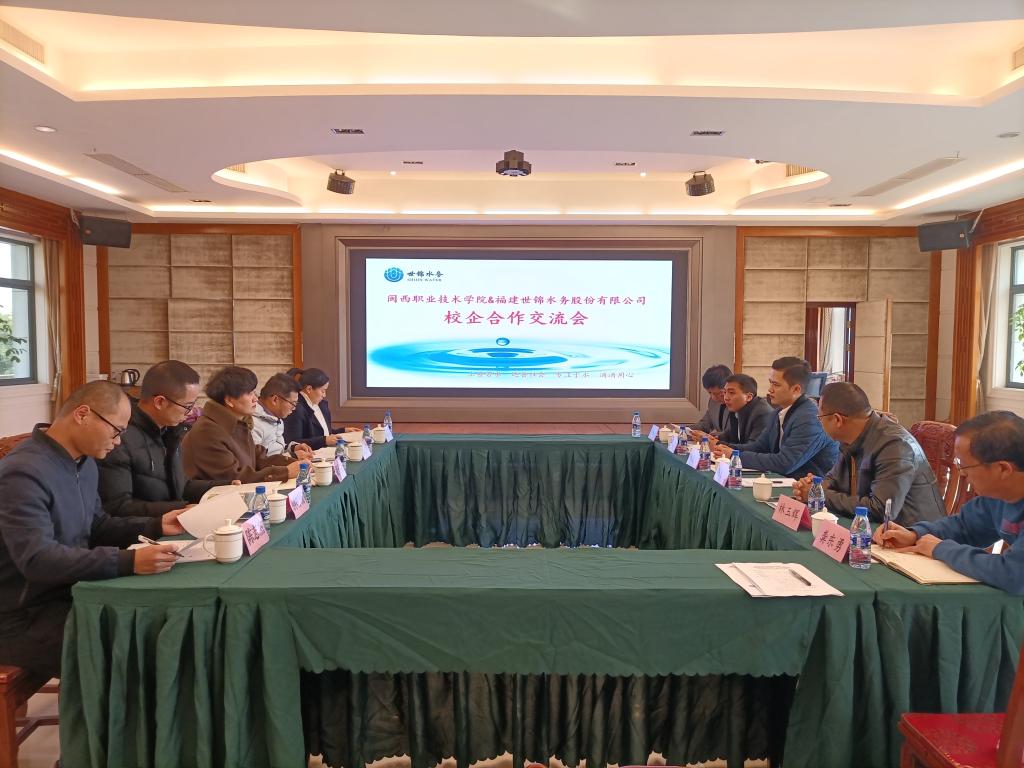 1月14日上午,在福建世锦水务股份有限公司总部召开校企深度合作交流会,世锦水务集团总经理陈发良、集团董事林玉辉、集团董事陈俊宏、集团行政总监龚东勇、长汀嘉波污水处理厂厂长兰旭、长汀县自来水供应有限公司经理集团吴清铭、投资部经理丘建清,MG冰球生态环境学院负责人梁玉兰、环境检测中心负责人钟彬扬、生态环境检测专业群负责人刘立峰、环境工程技术专业主任陈碧美、生态环境学院党政办秘书陈志杰参加会议。