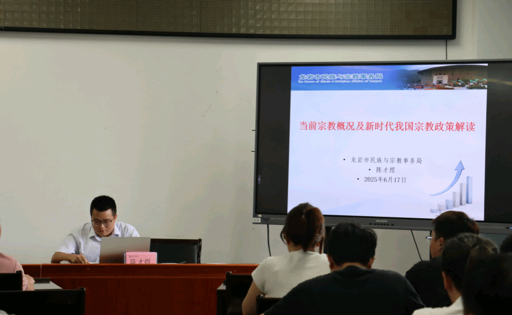 为深入贯彻落实党的民族宗教方针政策和习近平总书记关于民族宗教工作的重要指示批示精神,推进宗教政策法规学习月活动,提升全院职工宗教法治化水平,6 月 17 日,智能制造学院举办宗教政策法规专题讲座,学院黄顺杨副院长主持。本次讲座特别邀请到了龙岩市民族与宗教事务局民间信仰科陈才煜科长以《当前宗教概况及新时代我国宗教政策解读》为题作专题授课,学院全体教师参与了此次学习活动。