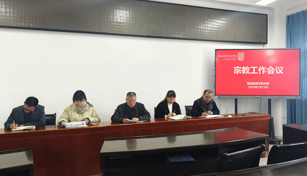 为进一步学习贯彻习近平总书记关于宗教工作重要论述,全面贯彻党的宗教工作基本方针和全国宗教工作会议精神,抵御宗教向校园渗透,扎实做好宗教工作,1月16日,智能制造学院开展宗教工作会议,会议由学院党委负责人陈建才主持。