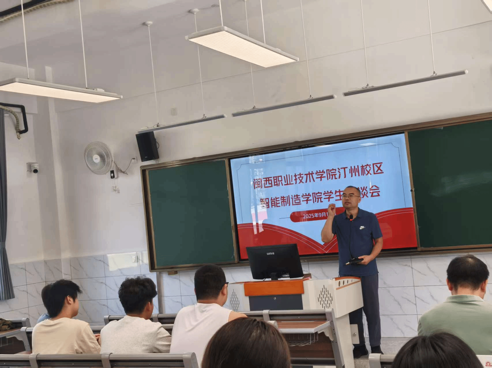 学院班子一行先后走访了学生教室、实训室和食堂,实地了解新生学习、生活环境,并与同学们亲切交谈。座谈会上,陈元招院长详细介绍了智能制造学院的专业特色、人才培养模式和就业前景。黄顺扬副院长耐心解答了同学们关于课程设置、技能竞赛、升学就业等方面的提问。