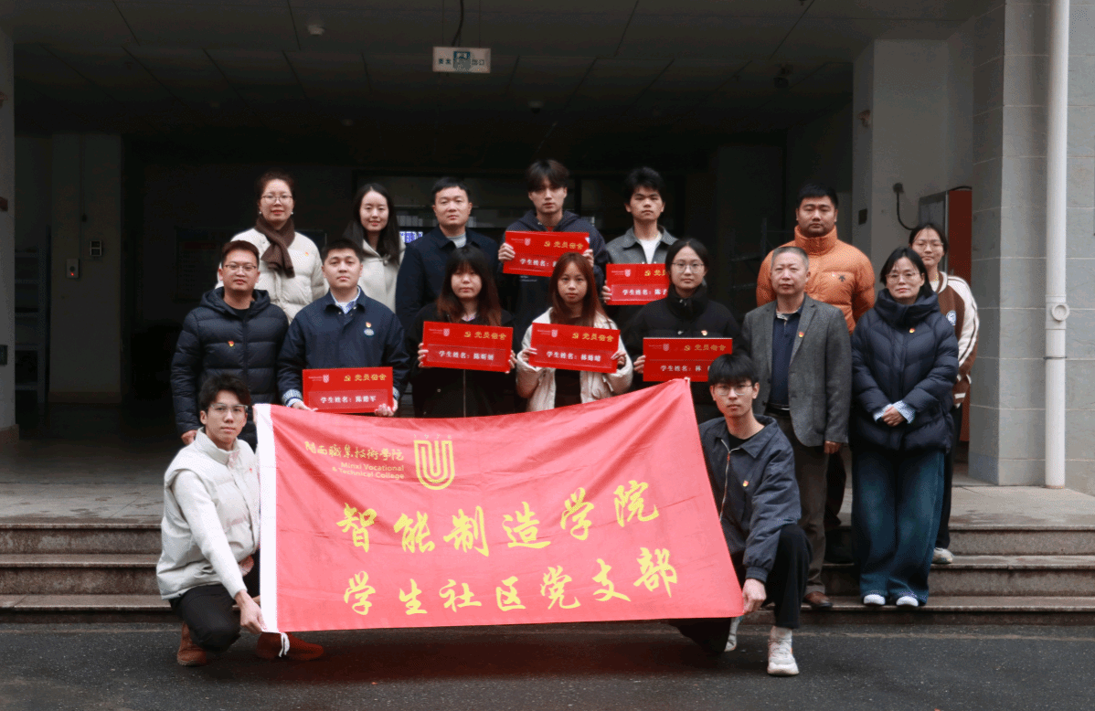 为深入推进“一站式”学生社区建设,加强学生党员思想政治教育,强化党性修养与党员意识,提升学生的社区归属感与凝聚力,充分发挥学生党员在日常生活中的先锋模范作用,积极营造“一名党员一面旗,一个宿舍一个堡垒”“我是党员我带头”的优良育人氛围。2025年12月25日智能制造学院在学生宿舍区开展了党员宿舍挂牌活动。学院党委书记陈建才、党委副书记丘文婷及辅导员代表与学生党员共同参与了此次活动。