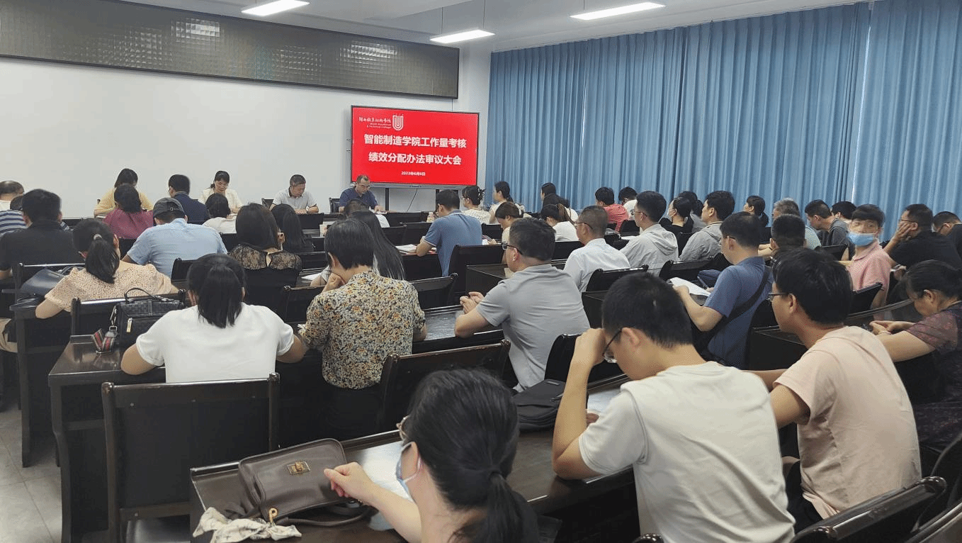 会上,学院行政负责人陈元招对绩效考核办法的制定过程、主要内容进行了解释说明。根据学校《奖励性绩效工资分配办法》文件精神,我院工作量考核绩效分配办法经学院党委会、党政联席会议审议通过后提交学院教职工大会讨论通过,53位到会教职工以举手表决方式全部同意通过了《智能制造学院工作量考核绩效分配办法》。