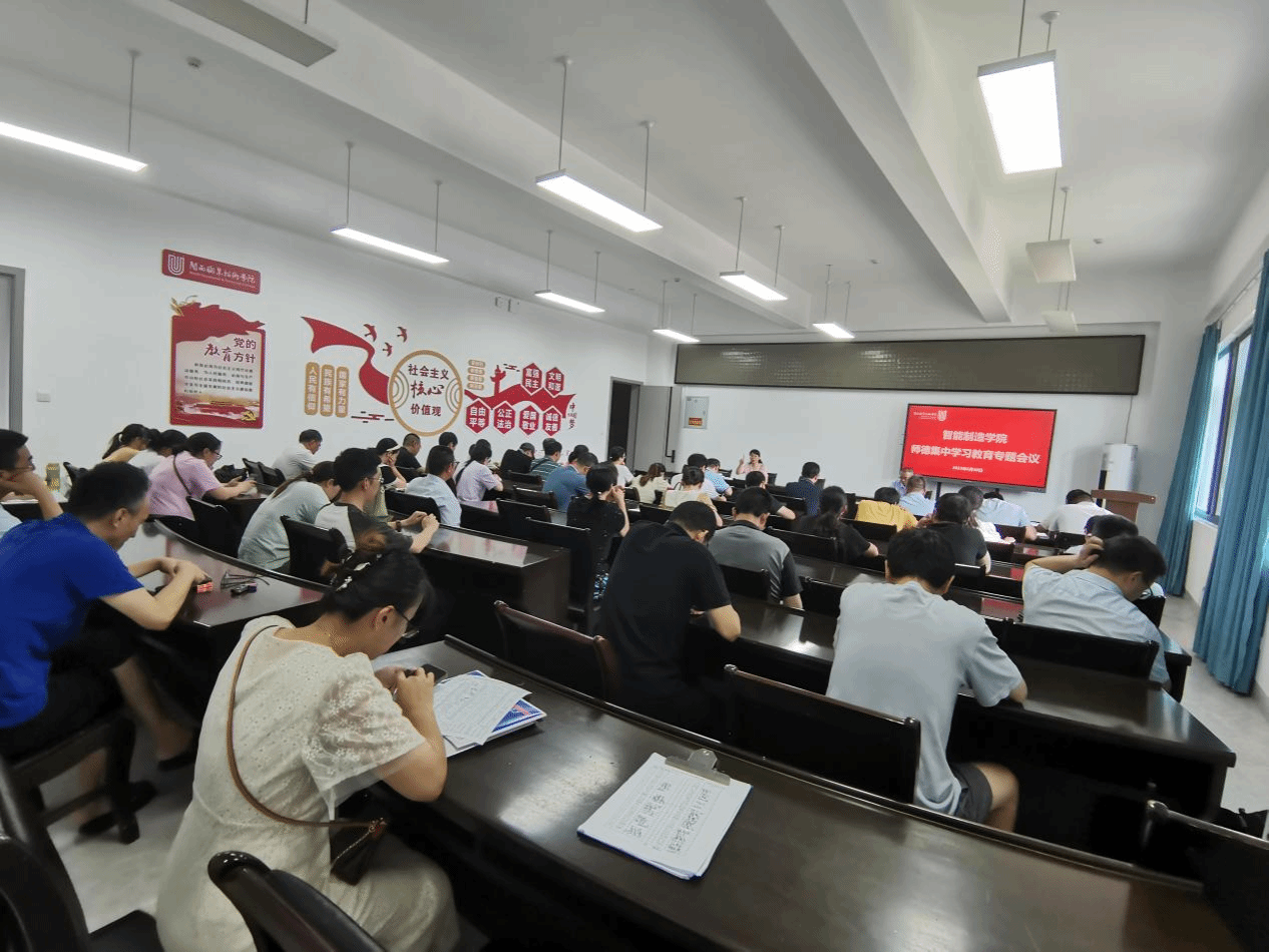 为深入学习贯彻习近平新时代中国特色社会主义思想,贯通学习习近平总书记关于教育的重要论述和重要指示批示精神,智能制造学院于6月30日召开师德集中学习教育,全体教职员工参加。