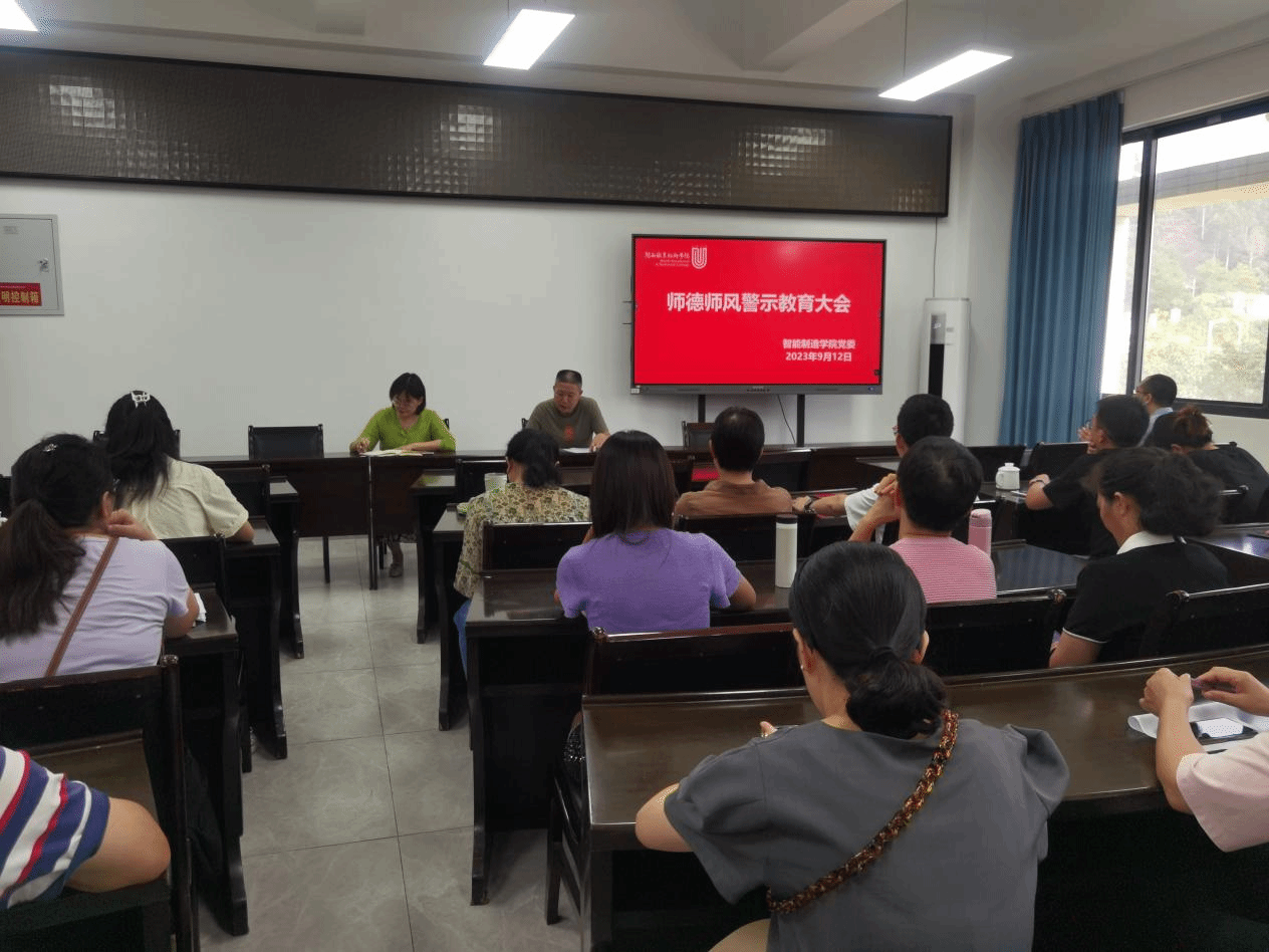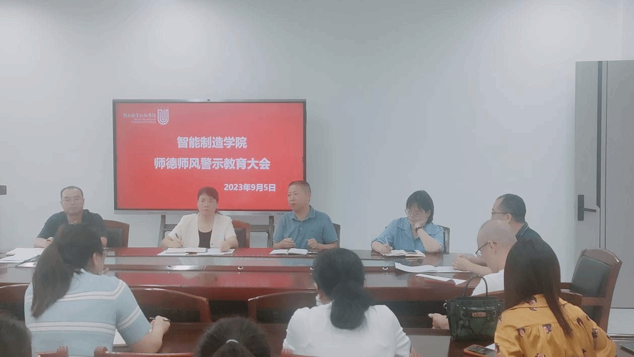 为深入贯彻党的二十大精神,根据教育部学习贯彻习近平新时代中国特色社会主义思想主题教育工作要求,落实师德师风建设工作推进暨师德集中学习教育,智能制造学院分层次召开师德警示教育大会。于9月5日召开专业群负责人、专业主任师德警示教育大会,于9月12日召开全院教职工师德警示教育大会,会议由智能制造学院党委书记陈建才主持。