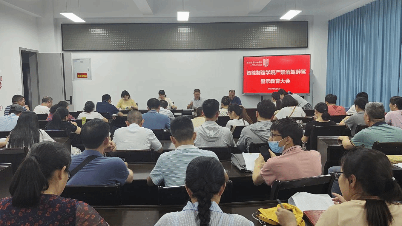 为进一步严明纪律,强化警示教育,筑牢广大党员教师法纪观念和守法意识,坚决遏制酒驾醉驾违法违纪行为的发生,智能制造学院于2023年6月6日开展严禁酒驾醉驾警示教育大会。