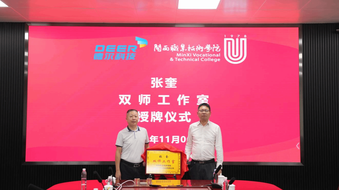 为深入贯彻党的二十大精神,提升职业教育质量,推动“双师型”教师队伍建设,进一步提升应用型人才培养质量,增强服务地方经济社会发展能力。2023年11月6日,智能制造学院班子成员及相关教师赴福建德尔科技股份有限公司举行校企合作福建德尔科技产业学院、双师工作室揭牌仪式。
