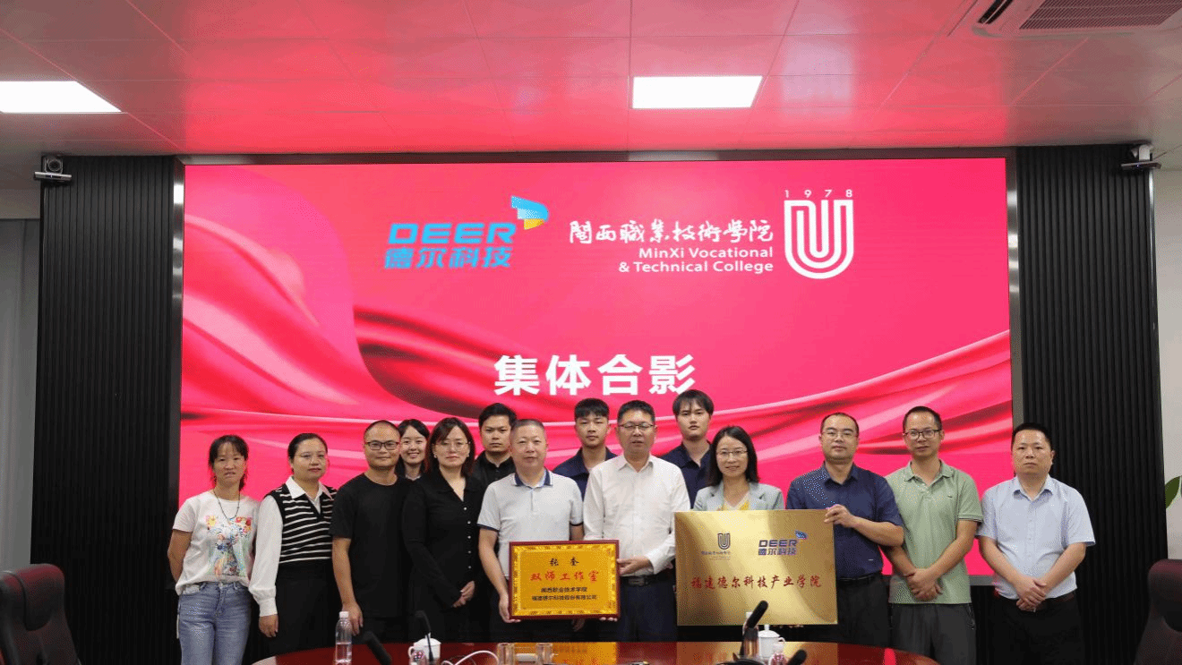 此次福建德尔科技产业学院、双师工作室的签约揭牌标志着智能制造学院与福建德尔科技股份有限公司开启了校企深度融合、共建共享的新征程。双方继续深化人才服务内涵、扩大人才合作模式,共同实现资源共享、优势互补、共谋发展。