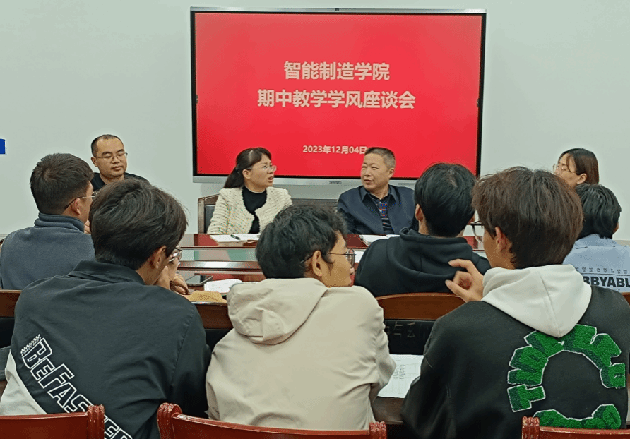 为深入了解学院教风、学风建设情况,广泛听取学生对教育教学的意见和建议,进一步提高教育教学质量,12月4日,智能制造学院召开了期中教学学风座谈会。学院领导班子、辅导员以及各专业学生代表参加了会议。