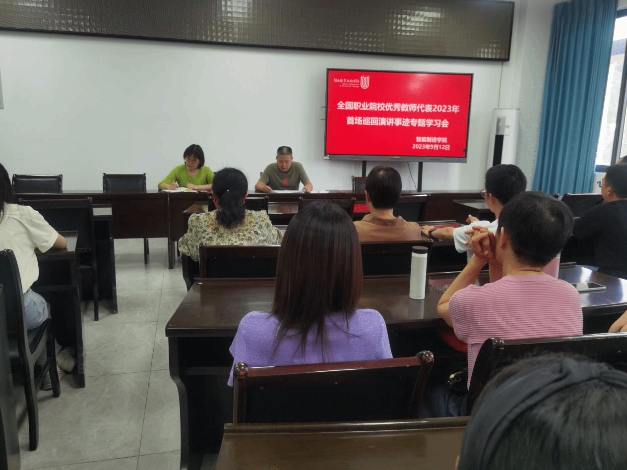 9月12日智能制造学院召开学习全国职业院校优秀教师代表2023年首场巡回演讲摘要大会,会议由学院党委书记陈建才主持,全院教职员工参加。