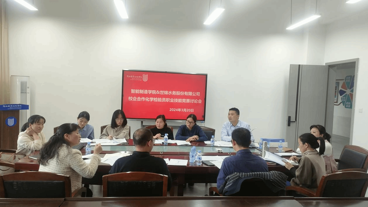 为进一步深化校企合作,加强和推进校企双方技能人才队伍建设,大力弘扬劳模精神、劳动精神、工匠精神。拟由MG冰球突破官网(智能制造学院)、福建世锦水务股份有限公司联合举办龙岩市2024年校企合作化学检验员职业技能竞赛。2024年3月20日,福建世锦水务股份有限公司行政副总监丘建清带队一行五人来我院商讨校企竞赛事宜。智能制造学院院长陈元招、副院长黄顺杨以及应化环保专业老师参与讨论。
