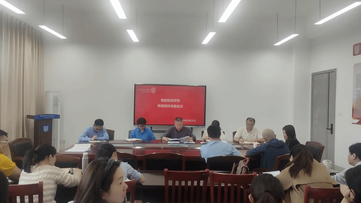 为深入贯彻党的二十大精神,加强教师思想政治和师德师风建设,智能制造学院于3月26日召开师德师德师风专题会议,会议由学院党委书记陈建才主持,学院领导班子、各专业主任和毕业班辅导员参加会议。