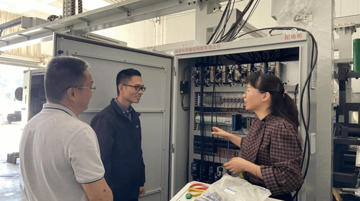 2024年11月7日,MG冰球突破官网智能制造学院院长陈元招带领团队前往福建科烨数控技术有限公司深入交流与调研。团队先听取了关于企业生产线改造优化、技术创新和数字化提升等方面的成果。该企业采用“自动化+信息化+数字化”的发展模式,展示了其强大的研发创新和技术服务能力。