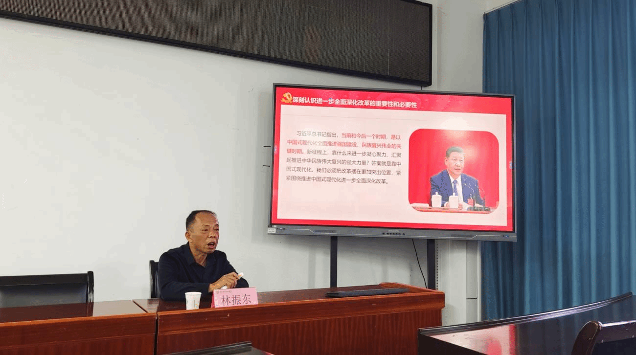 为深入学习贯彻党的二十届三中全会及省委十一届六次全会、市委六届八次全会精神,11月19日下午,智能制造学院邀请学校马克思主义学院林振东教授作《进一步全面深化改革 开辟中国式现代化广阔前景》专题宣讲。全院教职工参加宣讲会,学院党委书记陈建才主持会议。
